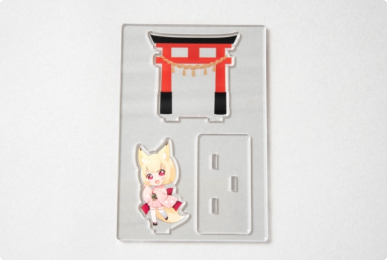 プレートにキャラを差し込むジオラマです。キャラ、背景、台座で立体感の出るグッズです。